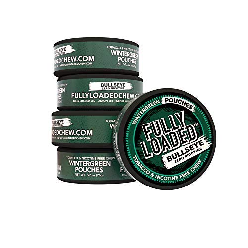Fully Loaded Chew Wintergreen Bullseye POUCHES provide a refreshing and balanced chew experience with 0% tobacco. The Bullseye line of products is completely nicotine free. Our pouches provide the same solid pack, mouth feel, spit, and pop of flavor that you desire in a chewing pouch without tobacco. The wintergreen flavor is sweet, refreshing, and balanced to deliver the goods.