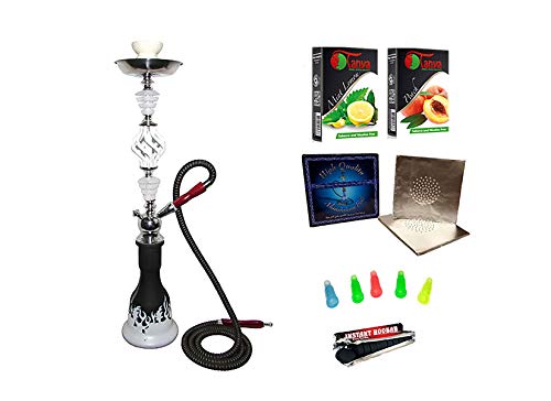 Brand New Single hose hookah 18" With combo kit, Perfect Hookah starter kit for entry level users it comes with all grommets, single hose, stainless steel stem, thick glass vase and large clay bowl. Medium high performance hookah perfect for any occasions ready to be set up second plug for a second hose (optional) Compact and easy to transport and clean carry this hookah anywhere you go petite modern design. All flavors are 100% Zero nicotine and Zero tobacco all herbal great tasting flavors over 100 flavors in stock. Pleas Note that all flavors are randomly chosen by packing center personal we will always give you the best of the best that we have.