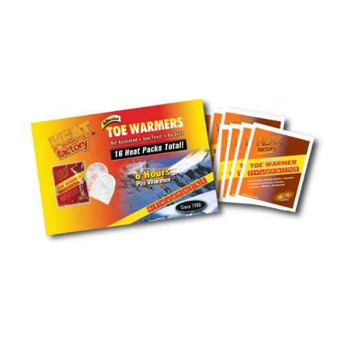 Heat Factory Adhesive Toe and Foot Warmers are designed for use on cold feet and when wearing shoes, boots and other air-restricting footwear. Heat Factory's Toe Warmers provide up to 6 hours of reliable, even heat. The Toe Warmer features an adhesive backing that adheres to the outside of a sock underneath the toes. The design of the warmer is ultra-thin, to ensure comfort and an even form under the foot. The Heat Factory Toe Warmer is a soft, lightweight pouch containing a mixture of iron powder, charcoal, salt and vermiculite. When exposed to the air, an oxidation process takes place that generates heat. Heat Factory warmers are specially engineered to provide quality heat that is long-lasting, comfortable, and even. Heat Factory continually tests its products to ensure that you receive only the highest quality warmers that will consistently deliver warmth as advertised. Once activated, Heat Factory warmers can even be saved for later use (preferably within a week) if placed in an airtight container. Unopened, the Heat Factory warmer has a shelf life of three years or more. Heat Factory's air-activated hand warmers, body warmers, toe warmers, and heated accessories have been providing warmth and pain relief to outdoors enthusiasts for the past 30 years.