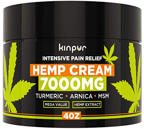 Hemp Cream for Pain Relief & Inflammation – 7000 Mg – Made in USA – Recover Arthritis, Muscle Strain, Stiff Joints, Achy Hands, Knees, Fingers – with Msm – Emu Oil – Arnica – Turmeric – 4 Oz