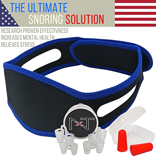 NXTREND USA - Anti Snoring Chin Strap for Men and Women - Anti Snoring Device Includes 4 Sets of Nose Vents, 1 Set of Earplugs, Reusable Travel Bag