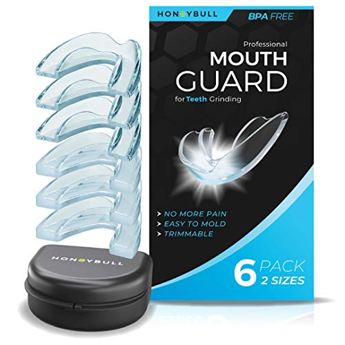 HONEYBULL Mouth Guard for Grinding Teeth [6 Pack - 2 Sizes] for Clenching at Night, Whitening & Sports