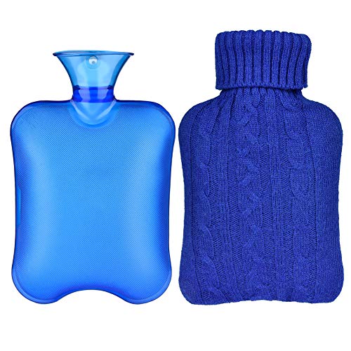 Hot Water Bottle, Sararoom 2L Large Capacity Hot Water Bottle with Washable Removable Knitted Bottle Cover for Warm or Cold Use, Quick Pain Relief-Blue Knitted