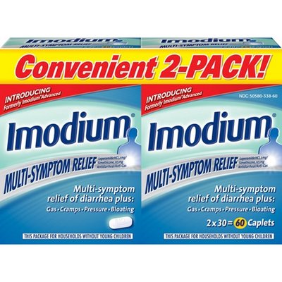 Imodium Multi-Symptom Relief Antidiarrheal/Antigas Caplets – 30 Count, 2 pk.