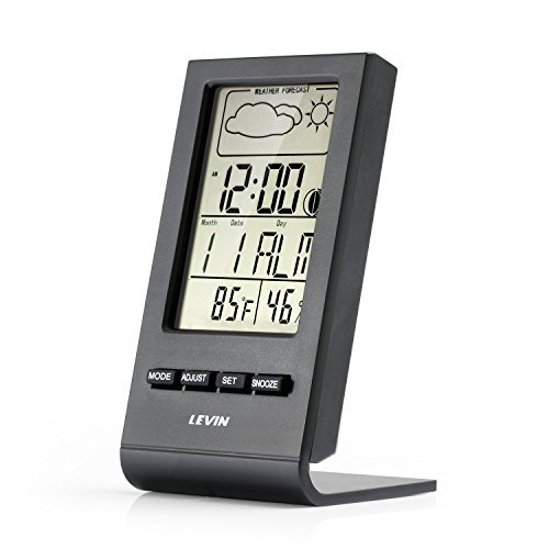 Indoor Humidity Monitor, Levin Hygrometer with Temperature, Digital Alarm Clock, Weatherprophet and Digital Calendar, Portable Size with Large LCD Screen Display