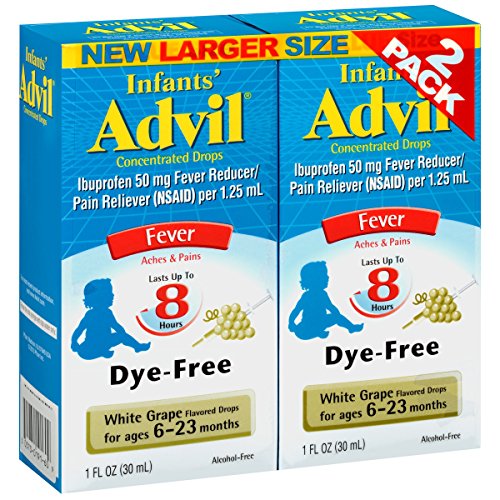 Infants' Advil provides effective, long lasting fever relief*. Available in dye-free white grape flavor formulated for children 6-23 months (12-23 lb). Includes syringe for easy dosing.