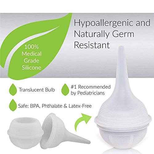 The Twister Bulb is the #1 recommended reusable hospital grade silicone nasal aspirator and ear syringe that works safely and effectively to clear fluid or mucus built up within your baby's nose and/or ear. Made of 100% medical grade silicone, it is hypoallergenic and naturally resistant to the growth of bacteria, mold and fungus. Its revolutionary twister design allows the bulb to be easily twisted apart for cleaning. The soft and narrow tip is designed to maximize its suction capability; 1-2 suctions within baby's nostril is all you need to achieve the desired results. Its see-through design also allows the caregiver to monitor the amount of snot being suctioned. No more second-guessing if any mucus is being sucked by the aspirator. The Twister Bulb will be the only nasal aspirator and ear syringe you will ever need. Save money and the environment from not having to replace dirty nasal or ear bulbs every time. The Twister Bulb can also be used as an ear syringe to help with ear wax removal. It is easy to clean, dishwasher, sterilizer and microwave safe. Simply twist, clean and reuse. Package includes the Twister Bulb and a drawstring carrying bag for easy storage.