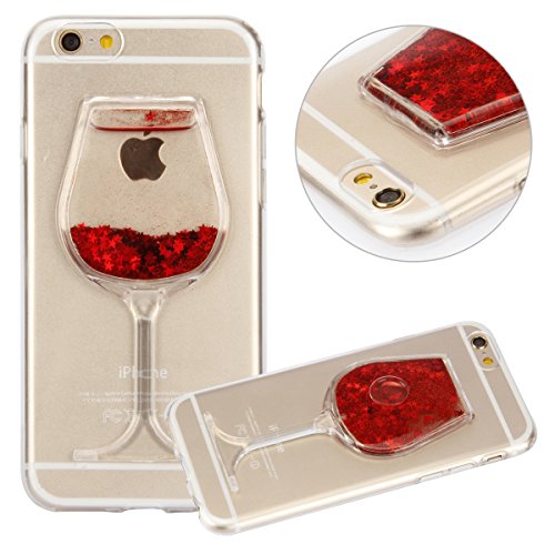 iPhone 6S Plus Case, UZZO [Liquid Glitter] [Crystal Clear] Flexible Soft TPU Case for iPhone 6S Plus / iPhone 6 Plus Bling Glitter Sparkle Love Heart Liquid Flowing Silicone Gel Back Case (Red)