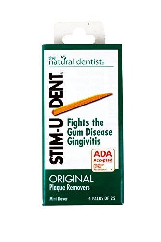 Stim-U-Dent Plaque Removers, Mint Flavor, 4 Packs of 25 (100 Picks)