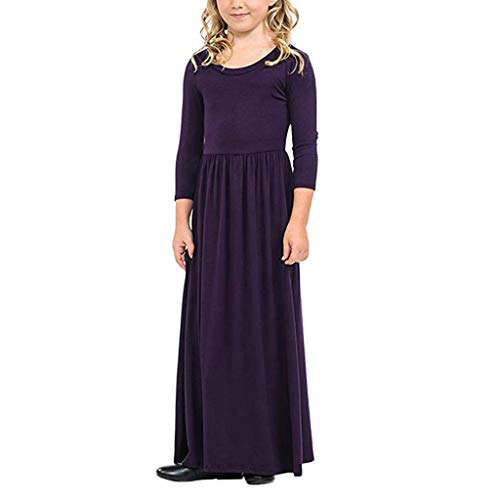 Jshuang ♛(5-12Y) Toddler Baby Girls Long Sleeve Solid Dress Kids Party Beachwear Dresses Outfits