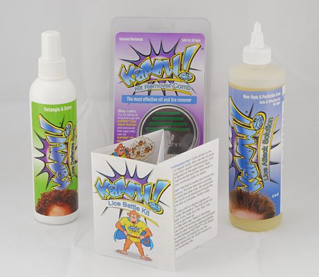 KaPOW! Lice Battle Kit is effective lice treatment kit for DIY lice treatment. You'll have everything you need to ward off and defeat lice. The KaPOW! Battle Kit includes: KaPOW! Lice Attack Solution (1 - 12 oz bottle), a KaPOW! Nit Remover Comb, KaPOW! Lice Defense Spray (1 - 8 oz bottle) and easy to follow head check, treatment, and prevention instructions.
