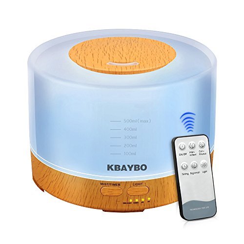 KBAYBO 500ml Cool Mist Humidifier Ultrasonic Aroma Essential Oil Diffuser with 4 Timer Settings 7 Color Changing LED for Office Home Bedroom Living Room Study Yoga Spa - Wood Grain