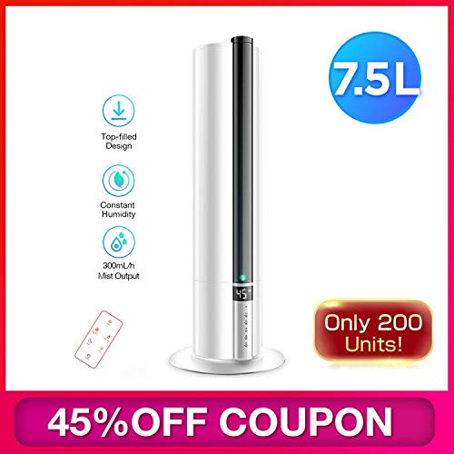 KEECOON Ultrasonic Humidifier for Large Room, Floor Humidifier for Home, School, Office, 7.5L Large Capacity, Top-Refill, Smart Humidity Quiet, Lasts Up to 24H, Diluted Hypochlorous can be Added