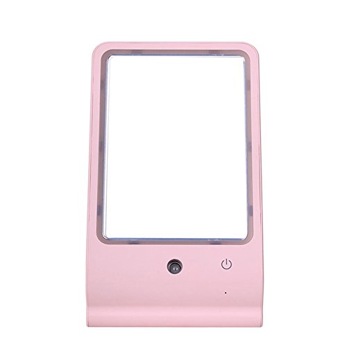 LED Makeup Vanity Mirror For Women | Face Spray Humidifier For Hydrating & Moisturizing Skin & Easy Makeup Application | USB Portable Glass Mirror With Sturdy Base For Home, Work & Travel (Pink)