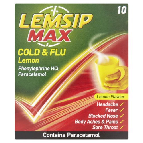 Lemsip MAX Cold & Flu Lemon Sachets , Pack Size 10 Sachets