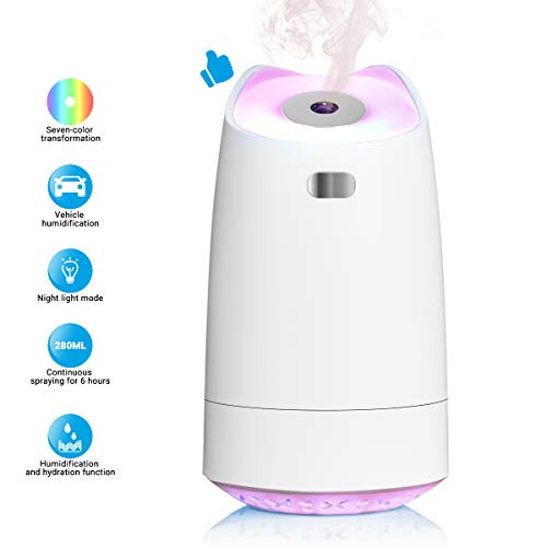 LoiStu USB Humidifier, 280ml Mini Portable Humidifier with 7-Color LED Night Light, Auto-Off, Ultra-Quiet, Suitable for Home, Office, Baby Room, Car (White)