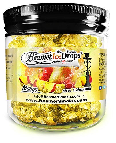 Mango Ultra Premium Beamer Ice Drops ¨ 50g Hookah Smoking Gel for Real Hookah! Beamer Ice Drops ¨ smokes in ANY Hookah bowl for over 2 HOURS! Typical bowls last 3-4 hours! Beamer Ice Drops ¨ have better taste and clouds than tobacco, come sealed in a bag, Made in Detroit, Michigan USA & Patent pending. Beamer Ice Drops ¨ are available in over 40 Mouth Watering flavors in 5 sizes (50g Jar, 100g Jar, 250g Jar, 500g Bag, 1000g (2 500g Bags). Search - Beamer Hookah - for all Beamer ¨ Products on Amazon.com ------------------------------------------------------------------------------ To Make a head of Beamer Ice Drops ¨, Simply let gel fall into ANY Hookah Bowl, fill to top & cover with foil! Set up & Clean up take less than 15 seconds! Gel color may vary. ------------------------------------------------------------------------------------------ Beamer Ice Drops ¨ are NOT steam stones! Beamer Ice Drops ¨ are NOT Herbal! Beamer Ice Drops ¨ are NOT tobacco! ---------------------------------------------------------------------------------- The Beamer Company was founded to give the discerning hookah smoker a premium class smoking experience. Beamer's ¨ massive burst of flavor and enormous clouds of smoke provide the ultimate hookah pleasure. If you want to escape to incredible taste and enormous clouds, then Beamer ¨ Hookah is the choice to make. Perfect ingredients, perfect blend, perfect choice. Each flavor is crafted to deliver supreme taste and colossal clouds of delight. Each smoking experience comes with the finest flavor imaginable and incredible clouds of smoke. Beamer ¨ is endlessly working on new flavors that will unquestionably arouse your taste buds! With the new No Smoking Law in many states, Beamer Ice Drops ¨ CAN BE SMOKED IN BUSINESSES and RESTAURANTS BECAUSE IT IS NOT TOBACCO (depending on your stateÕs law)! Beamer Ice Drops ¨ Supports the United States Economy!