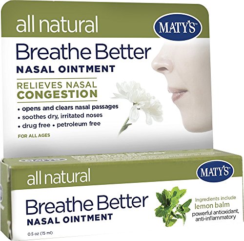 A great alternative to nasal strips for those who suffer from chronic congestion, nighttime congestion, or use CPAP machines or oxygen therapy. Maty’s All Natural Nasal Ointment works to promote a healthy nasal environment. It relieves congestion by reducing the inflammation and swelling. When applied to the inside of your nose, it encourages good bacteria and discourages harmful bacteria. Think of it as a probiotic for your nose.