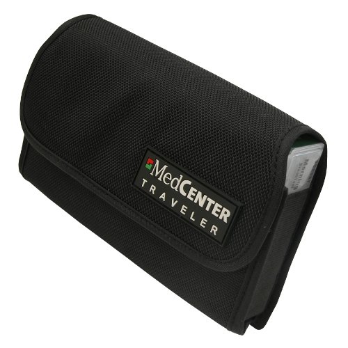 his compact nylon travel kit includes seven Pill Boxes (marked with the days of the week) in a convenient and durable nylon case. The MedCenter Traveler fits conveniently in a carry on or suitcase. The Traveler also works directly with the MedCenter Monthly System and the MedCenter Talking Alarm Clock (sold seperately). VELCRO FLAP allows for quick access to Pill Boxes HOLDS UP TO SEVEN PILL BOXES for up to one full week of medication COMPACT SIZE saves space in desk drawer, carry-on luggage or suitcase INCLUDES SEVEN PILL BOXES Numbered with each day of the week FOUR CAVITIES in each included Pill Box The Standard Pill Box (included in the MedCenter System and all other standard MedCenter organizers) has an individual dose compartment which measures roughly 15/16" wide x 1" long x 3/4" deep on the inside. Each Pill Box contains four of these dose compartments. - INCLUDES SEVEN PILL BOXES Numbered with each day of the week - FOUR CAVITIES in each included Pill Box