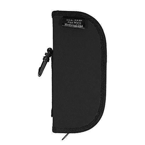 DIA-PAK DayMate Compact storage case that holds diabetic supplies including pen systems, pre-drawn syringes, and insulin bottles. Comes with cooling gel pack and clips to belt for convenience.