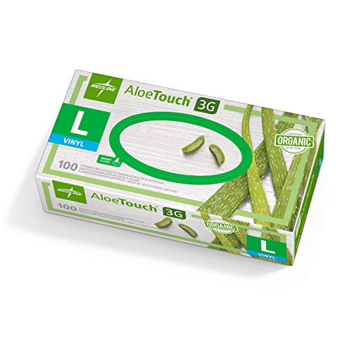 Medline 6MDS195176 Aloetouch 3G Powder-Free Latex-Free Synthetic Exam Gloves, Vinyl, 9" Length, Large (Pack of 1000)