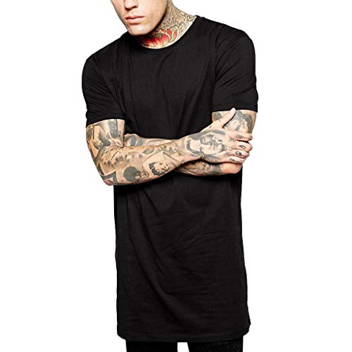 Mens Casual Loose Fit Short Sleeve T-Shirts Pure Color Soft Lightweight Hipster Hip Hop Longline Crewneck T-Shirt Black