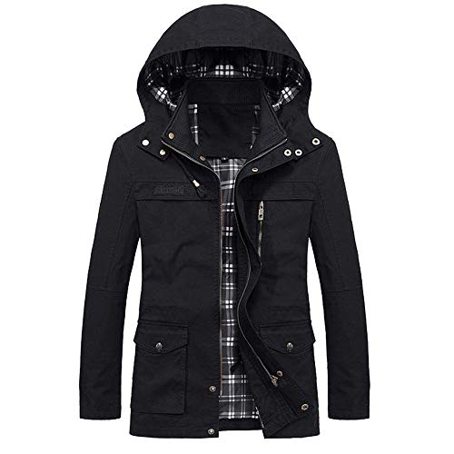 Men's Winter Warm Military Lined Parka Jacket with Removable Hooded Fur Collar Windproof Outwear Coat Winter Coats Down Black