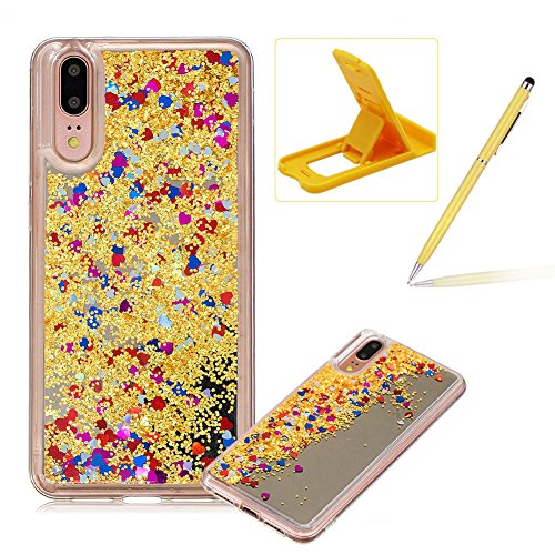 Mirror Liquid Case for Huawei P20,Soft Bumper Clear Cover for Huawei P20,Herzzer Luxury Slim Gold Glitter Quicksand Love Hearts Sequins Back Case