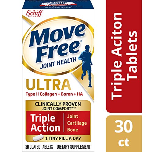 Move Free Ultra Triple Action Joint Supplement is just one tiny pill per day with triple action support for joints, bone, and cartilage. With powerful ingredients to support your joint health including Type II Collagen, hyaluronic acid (HA), and boron, Move Free Ultra helps you keep your move on! Type II Collagen helps preserve and maintain cartilage. Hyaluronic Acid is the same molecule found in healthy joint fluid that supports joint lubrication and smooth movement. Boron helps support healthier bones by maintaining healthy levels of Vitamin D, Calcium and Magnesium. Because joints receive their essential nutrients through their adjoining bones, healthy bones are key for healthy joints*.
