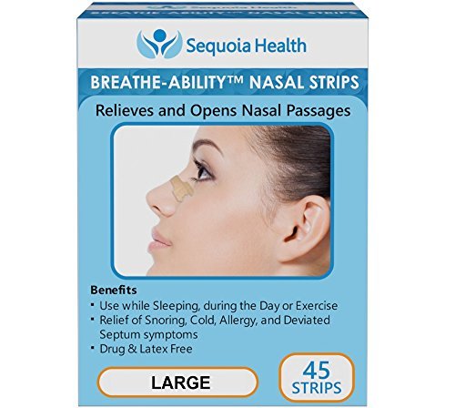 Nasal Strips (45 Count) by Breathe-Ability - Relieves and Opens Nasal Passages - Relief of Snoring, Cold, Allergy, and Deviated Septum Symptoms (Large) by Sequoia