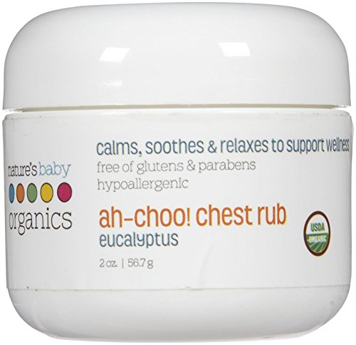 Help your child breathe easily during cold or flu with Nature's Baby Organics Organic Ah-Choo Chest Rub. This aromatherapy balm is made with organic olive oil, eucalyptus and tea tree ingredients that can soothe and relax the whole family. Great for infants with sensitive skin, it can be massaged gently onto the chest area to loosen chest and sinus congestion. Make breathing easy when the sniffles and congestion hit.