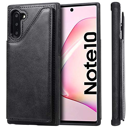 NEXCURIO Leather Silicone Case for Samsung Galaxy Note 10, Shockproof Anti-Scratch Shock Absorption Protective Cover Case for Galaxy Note10 - NEKTU130084 Black