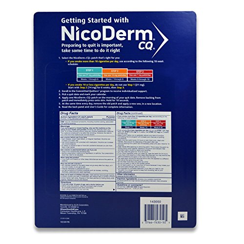 NicoDerm CQ is a small clear nicotine patch. When you put on a NicoDermCQ patch, nicotine passes through the skin and into your body. NicoDerm CQ patch is very thin and uses special material to control how fast nicotine passes through the skin. Unlike the sudden jolts of nicotine delivered by cigarettes, the amount of nicotine you receive remains relatively smooth throughout the 24 or 16 hour period you wear the NicoDerm CQ patch. This helps to reduce cravings you may have for nicotine. Smoking cessation and stop smoking aids. *These statements have not been evaluated by the Food and Drug Administration. This product is not intended to diagnose, treat, cure or prevent any disease.