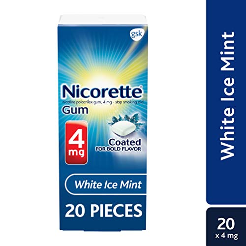 Nicorette Nicotine Gum, Stop Smoking Aid, 4 mg, White Ice Mint Flavor, 20 count