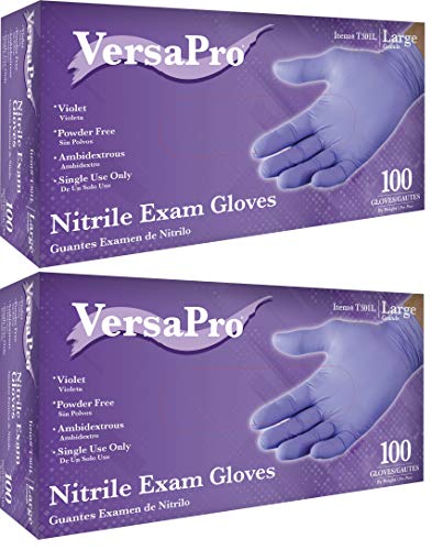 VersaPro N301L Nitrile Exam Gloves, Medical Grade, Powder Free, Latex Rubber Free, Disposable, Non Sterile, Food Safe, Violet color, 200 Count, Size Large