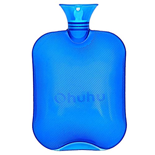 Ohuhu 2L Hot Water Bottle for Pain Relief Hot Therapy Classic Transparent Blue Hot Water Bottles
