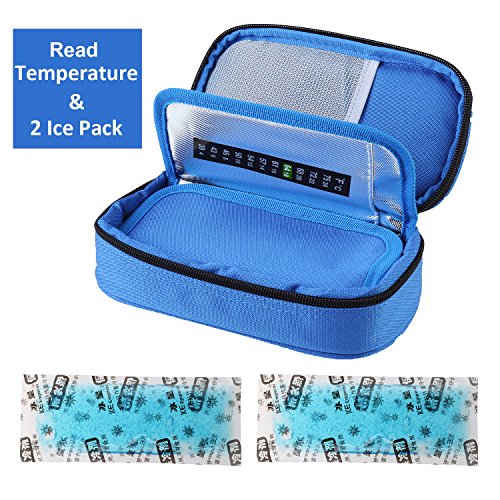 Temperature Display Insulin Cooler Travel Case with Ice Chill Packs Medical Cooler Bag Diabetic Organizer Oxford Fabric, 8 x 4 Inch