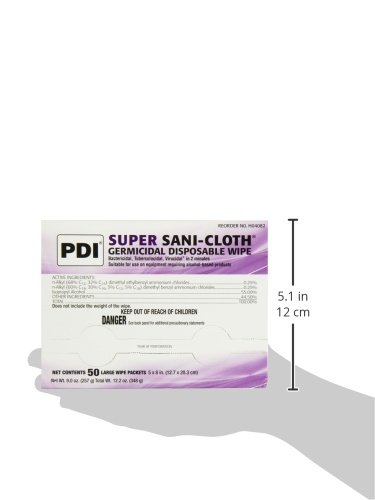 PDI SANI-CLOTH SUPER DISINFECTANT WIPES - Individually Wrapped, 5" X 8" - Model PDI H04082 [50 Large Wipes]