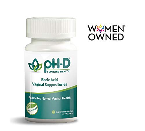 Ph-D Feminine Health, First Woman Owned Boric Acid Vaginal Suppositories, Made in USA, Bottle of 24 (600mg)