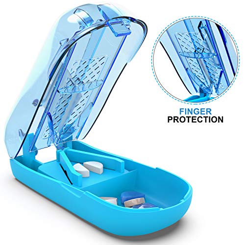 Pill Splitter Ergonomic Pill Cutter with Finger Protection - Cutting Medication Tablets in Half with Small Pill Box Container - Vitamins and Supplement Slicer Chopper Divider