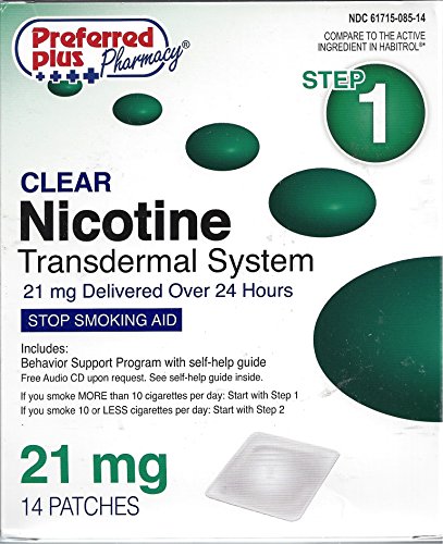 Preferred Plus Pharmacy CLEAR Nicotine Transdermal System ~ Step 1, 21mg, 14 patches (2 Weeks), Stop Smoking Aid