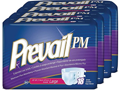 Prevail Maximum Plus Absorbency Extended Use Incontinence Briefs, Large, 18-Count (Pack of 4)