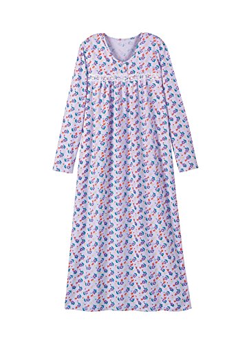 This warm and comfy flannel nightgown features a lace-trimmed yoke with two buttons. Imported. Machine wash and dry.