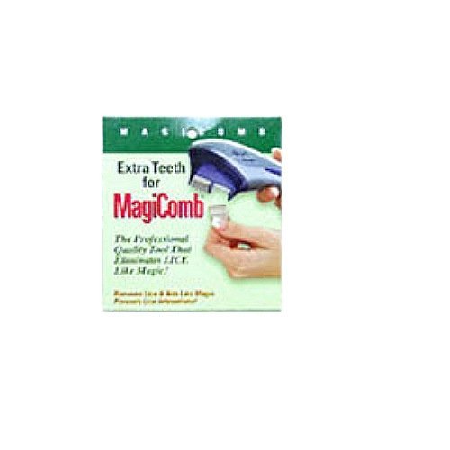 MagiComb Extra Teeth 1 unit from Quantum The electronic combing tool that can prevent lice forever! The 21st Century Head Lice Remedy! MagiComb is a head lice remedy that uses 21st century technology to provide outstanding results. No other head lice remedy offers the capability of preventing lice and eliminating them. Other head lice remedies such as olive oil, mayonnaise, shampoos, coverings, etc. work to a certain degree. But MagiComb is the best mechanical head lice remedy tool that you can buy. Use weekly for total protection and prevention Eliminates lice and nits Safe, non-toxic head lice remedy Economical, use over and over True 21st Century Head Lice Remedy Limited Lifetime Warranty MagiComb - The 21st Century Electronic Head Lice Remedy MagiComb is a revolutionary, internationally patented combing tool made of durable, high-impact plastic. MagiComb has two sets of side by side vibrating teeth that glide gently through all types of hair. By vibrating in opposite directions, the vibro-teeth pull even the smallest lice and nits off the hair and scalp and will not pierce the skin or pull the hair. It will get rid of lice and nits quickly, easily, safely and permanently. MagiComb's teeth easily pull out of the device for quick cleaning and re-use. The quiet micro-motor inside the MagiComb will not burn out even when combing the thickest hair. MagiComb operates on two standard C type batteries. Owning a MagiComb is like have an insurance policy against infestation. It's truly a Hi Tech head lice remedy. MagiComb Can Help Prevent Head Lice Infestations. This incredible head lice remedy technology can actually prevent infestations! By using MagiComb once a week, nits and lice can be removed before the infestation becomes evident. Extra sets of teeth are available for treating several children at a time. Simply soak one set of teeth in hot soapy water or alcohol while using the second set. Be sure the teeth are dry before reusing.