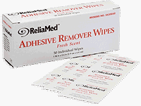 Reliamed Adhesive Remover Wipes dissolves and removes adhesive residue from skin and appliances.