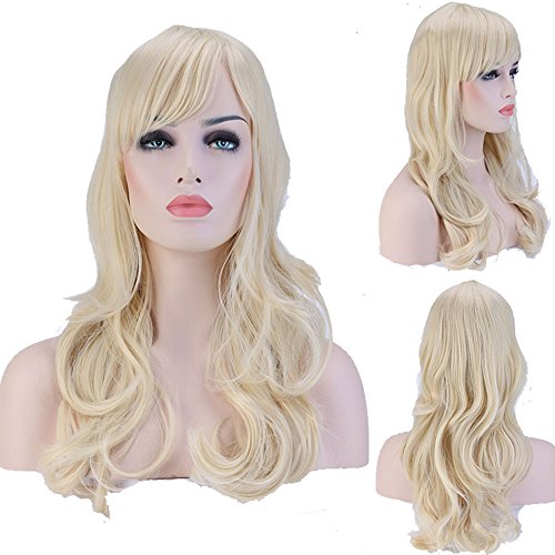 Ryvox(TM) Women's 19" Long Curly Wave Lovely Bleach Blonde Full Head Wig Synthetic High Heat Resistant TW063