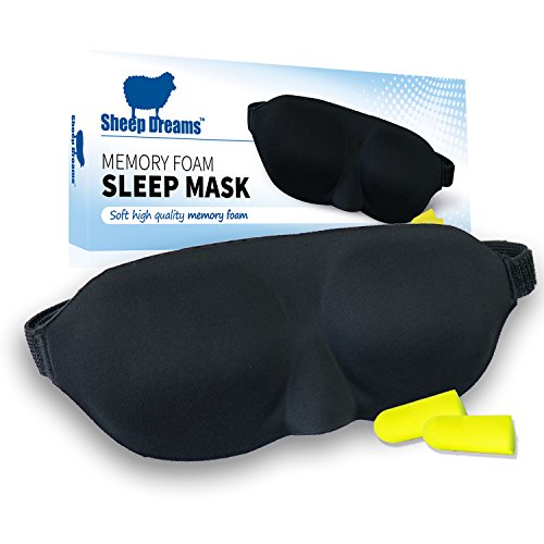 Sheep Dreams Memory Foam Sleep Mask - Best Soft Quality Eye Mask for Men, Women & Kids - Great for Traveling - Earplugs Included Free