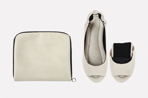 These flats are a series of foldable, lightweight shoes that you can carry in your purse. We've designed the shoes to be able to easily fold in half and fit into the matching zippered pouch. You can unfold them when you want to slip into the flats, and when you're ready to wear your original shoes, just fold them back up and store them in the pouch to prevent dirtying your handbag. They're a stylish solution when you're tired of wearing heels, so keep them handy in your purse and you won't ever have to resort to looking drab for comfort.