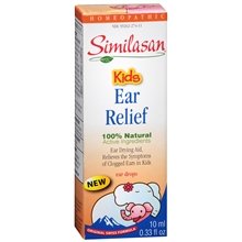Similasan Kid's Earache Relief Description New Look! 100% Natural Active Ingredients Multi-Symptom: Clogged Ears Ear Discomfort Trapped Water Itching Homeopathic When your child has the sensation of clogged, full, and troublesome ears, it can be distracting and irritating. Give them soothing relief for their symptoms with Similasan Kids Ear Relief homeopathic ear drops, a solution created just for them. Kids Ear Relief ear drops help clear water trapped in their ear and the homeopathic ingredients help stimulate their body's natural ability to soothe the ear, decrease the ear's sensitivity to external factors such as water, cold and drafts, in the ear, and return their ear to a water-free and comfortable condition.
