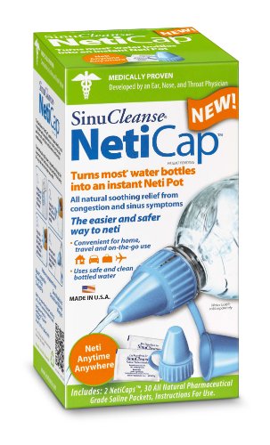 Package contains 2 SinuCleanse NetiCaps and 30 Saline Packets. The SinuCleanse NetiCap provides instant relief for nasal congestion and sinus problems no matter your location and when safe and clean bottle water is prefered fir nasal washing. The comfort tip features a unique thread design that turns most water bottles into an instant NetiPot allowing for easy, safe and immediate sinus relief.